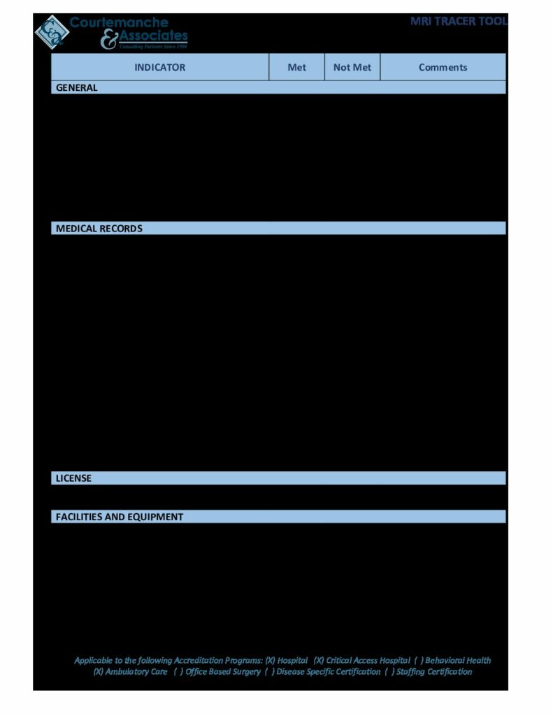 Document Overview: Specifically designed to meet the needs of Quality and Accreditation/regulatory personnel to guide them through a thorough assessment of their organization’s MRI Services based upon the CMS Hospital Conditions of Participation and Accrediting organization requirements. Copyright & Disclaimers: © Courtemanche & Associates. Regulatory information may change over time as healthcare expectations change. This […]